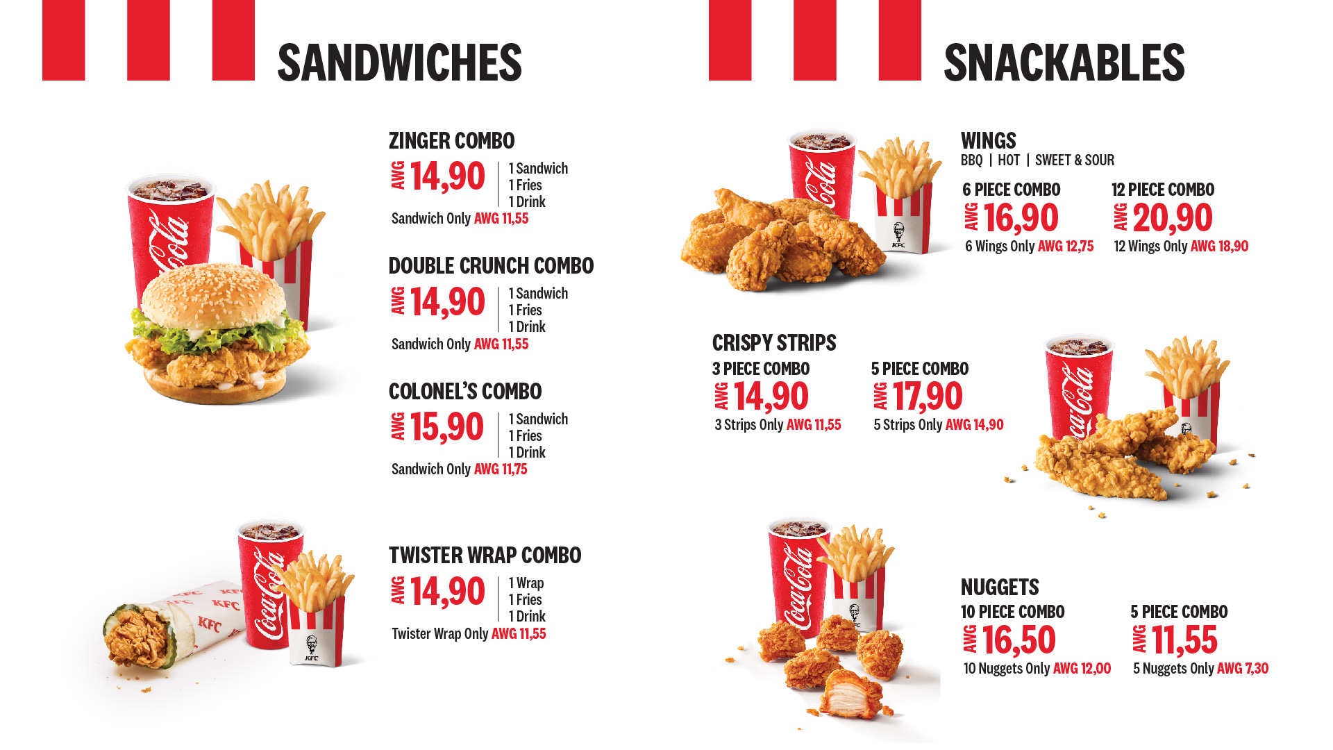 Our KFC Restaurants are located in various part of our One Happy Island. San Nicolas , Santa Cruz, Oranjestad and Palm Beach and Sasaki. Give us a visit in one of our restaurants!